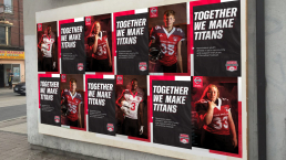 Modern geometrics inspired by football and clean bold graphics feel reminiscent of authentic sports properties while adding visual interest to arrest attention in any medium and exceeding all the benchmarks from previous years.